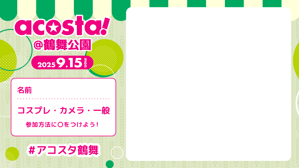 ※コスプレ、カメラマン参加者は「acosta!」イベント参加チケットが必要です